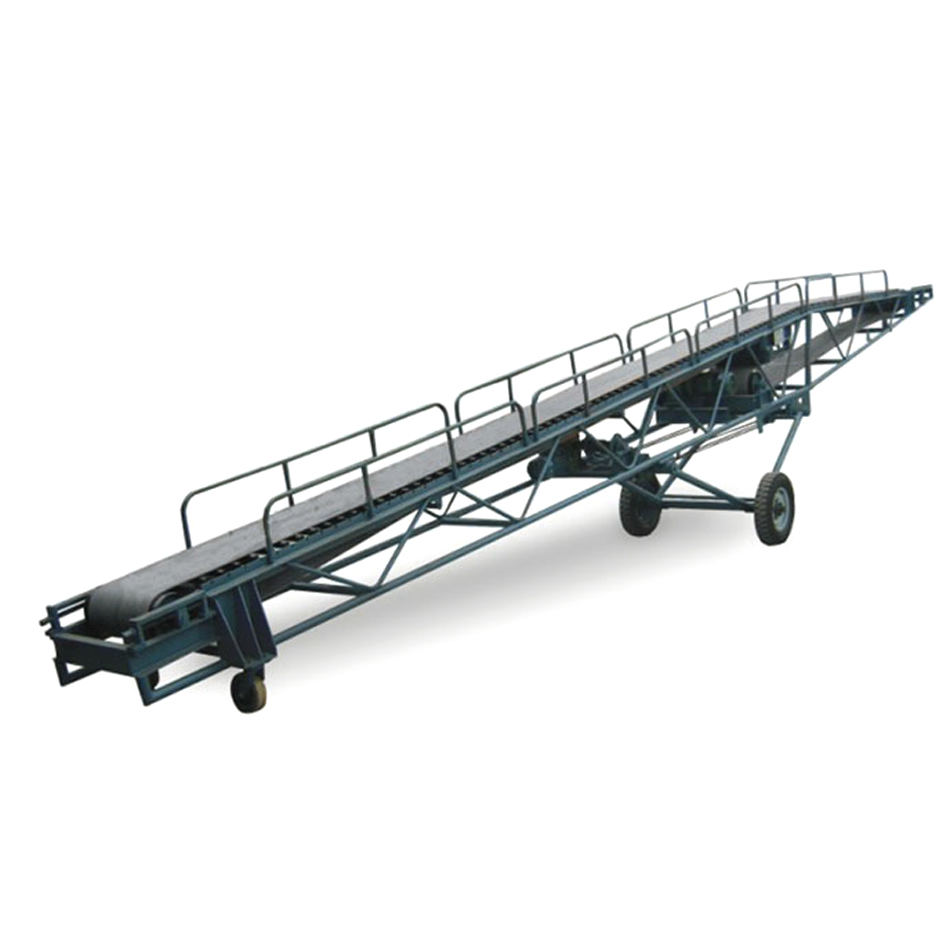 移動皮帶輸送機是一種工效高,使用機動性好的連續(xù)輸送裝卸設(shè)備。廣泛運用于港口、碼頭、車站、倉庫、料場、廠礦等地輸送煤炭、砂石、糧食、化工原料、成件物品等。移動式皮帶輸送機分為可升降型及不可升降型兩大類,輸送帶的運行靠電動滾筒驅(qū)動,整機的升降與運行均為非機動。
